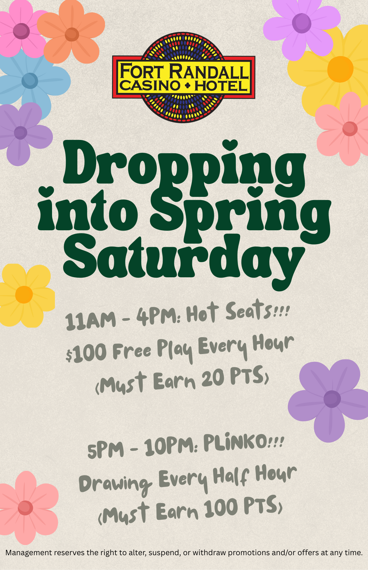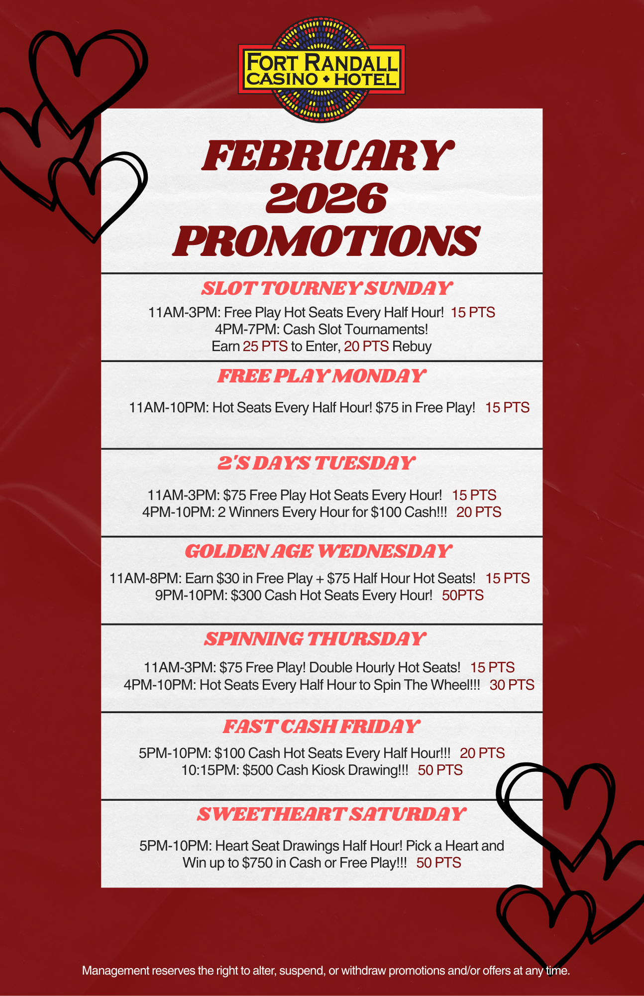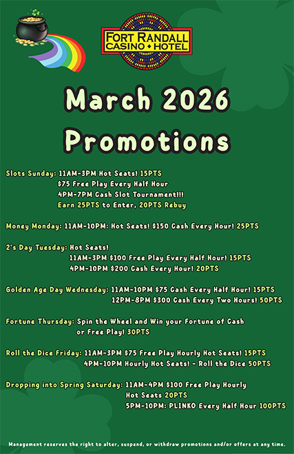 At Fort Randall Casino & Hotel, we are open 24 hours a day.